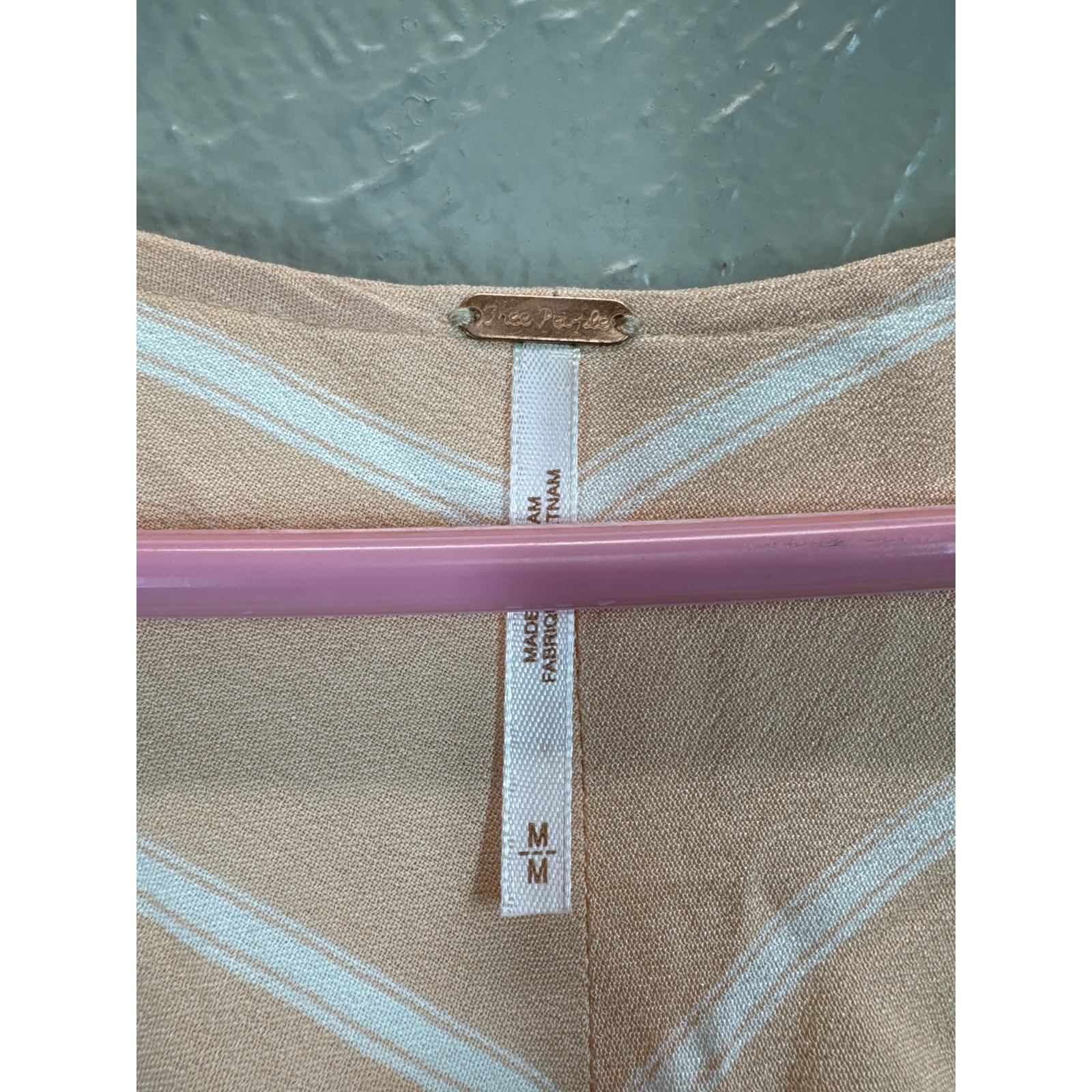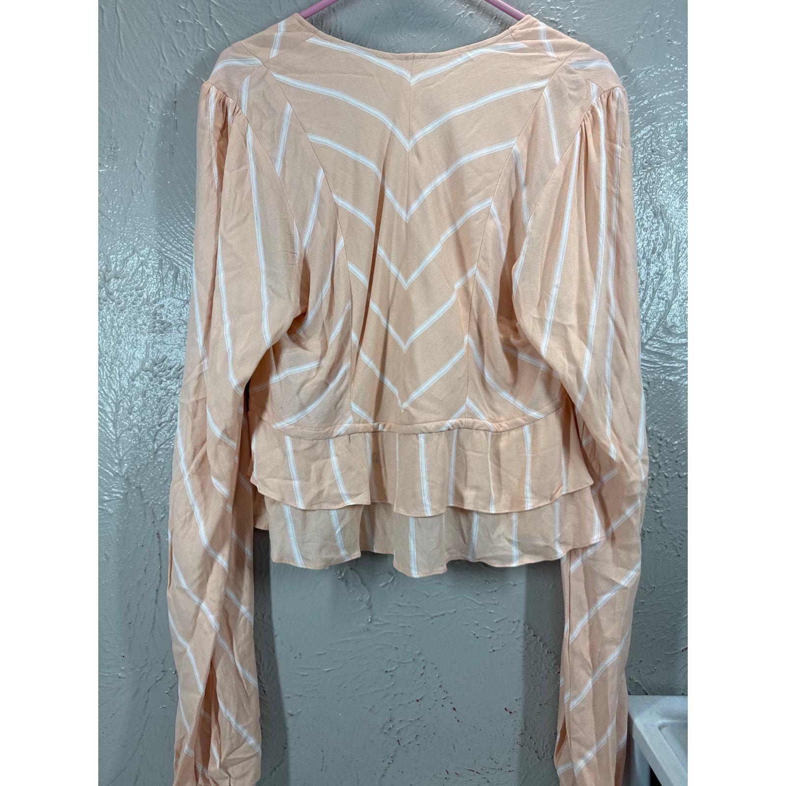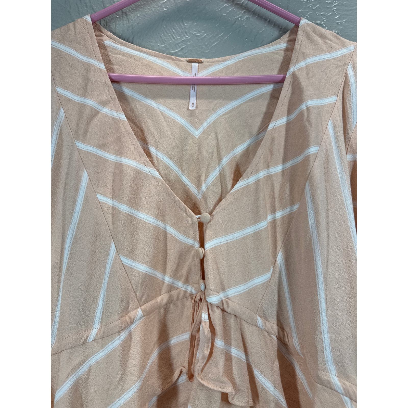 Free People Samifran Tie Front Blouse Peach Stripe Balloon Sleeve Cropped Medium