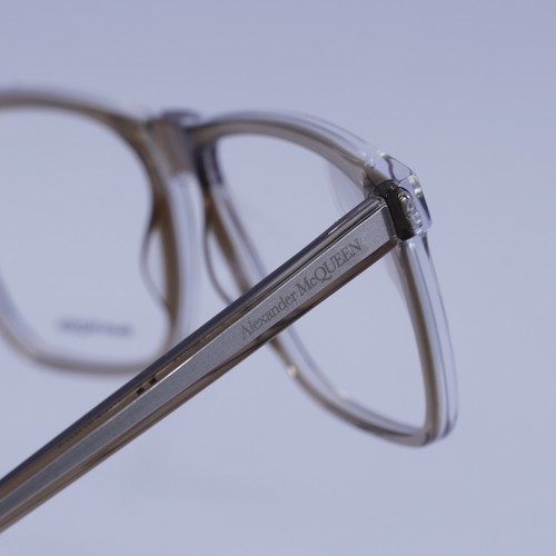 Alexander McQueen AM0247O 002 Transparent Brown 56mm Eyeglasses New Authentic