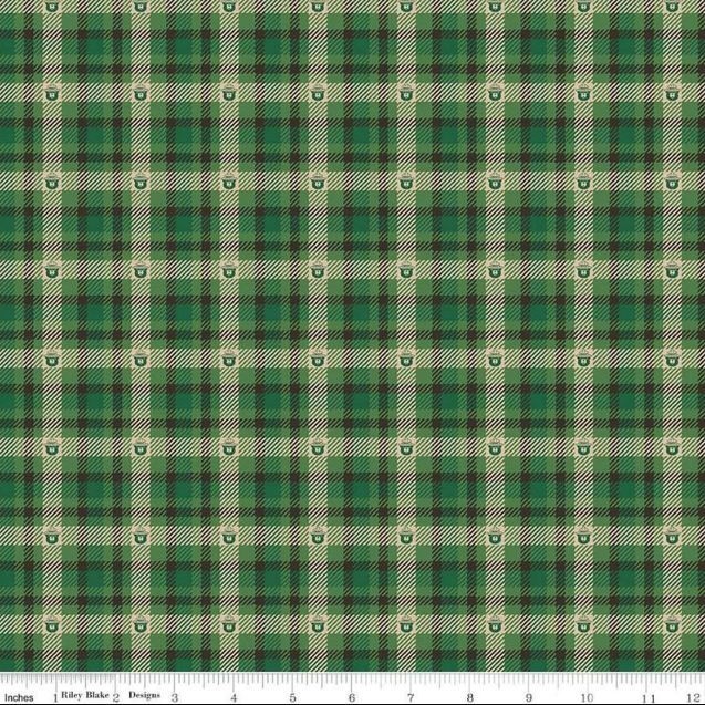 Cotton Only You Plaid Pattern Smokey Bear Forest Fabric Print by Yard D787.23