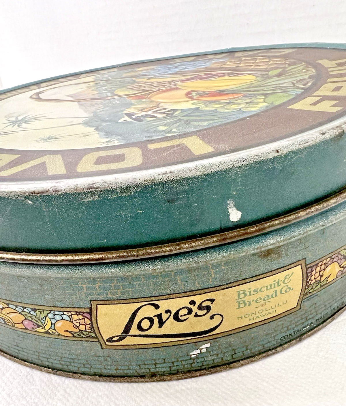 Advertising Memorabilia RARE 1927 Love's Fruit Cake Tin Honolulu Hawaii 10 3/8