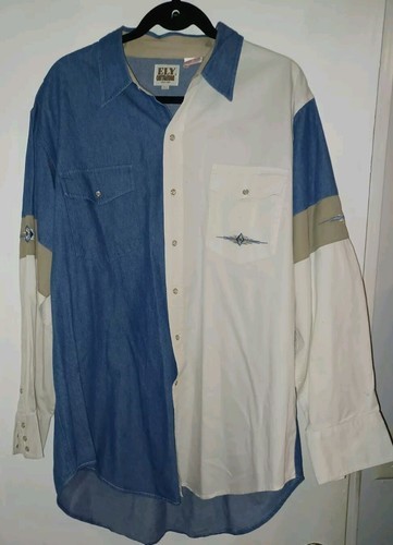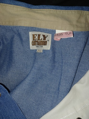 Men's Shirt Denim Ely Cattleman Long Sleeve Pearl Snap Embroidered 2XL