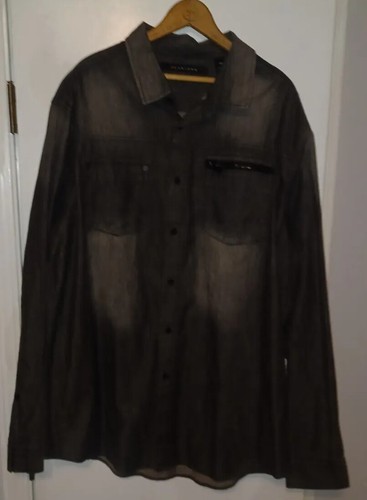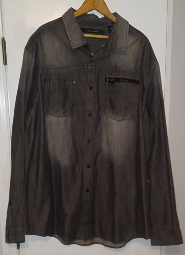 Sean John Casual Long Sleeve Shirt Zipper Pocket, Mens 3XL - Dark Gray