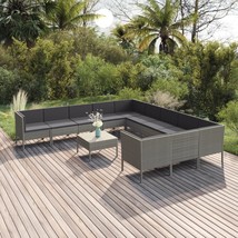 12 Piece Patio Lounge Set with Cushions Poly Rattan Gray
