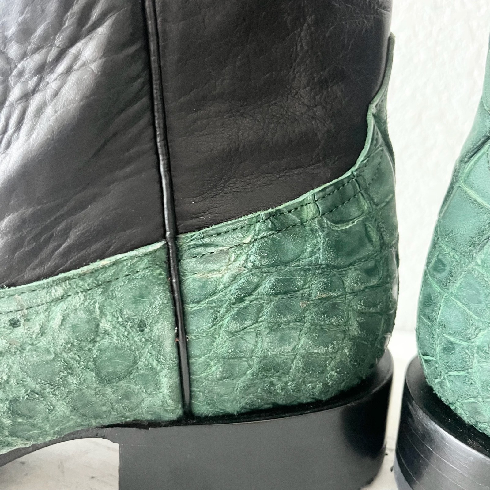 Rod Patrick Custom Bootmakers - Mens Cowboy Boots in Green Nubuck American Alligator leather with a Western French Toe.