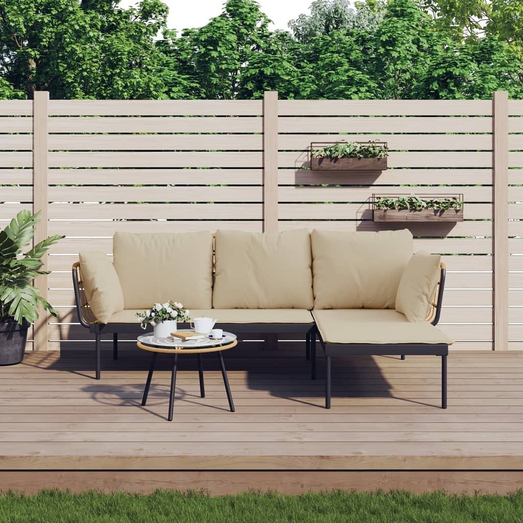 3 Piece Patio Lounge Set with Beige Cushions Poly Rattan