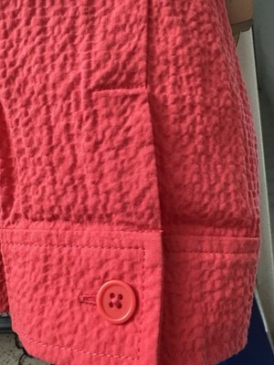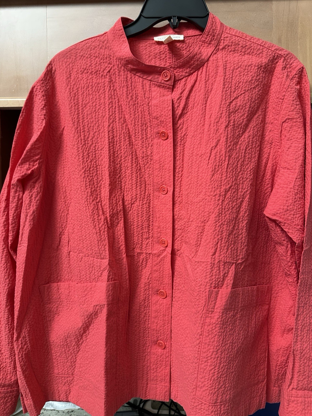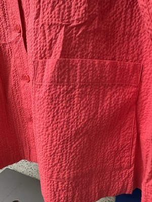 EILEEN FISHER Jacket L Seersucker Organic Cotton Mandarin But Front Watermelon