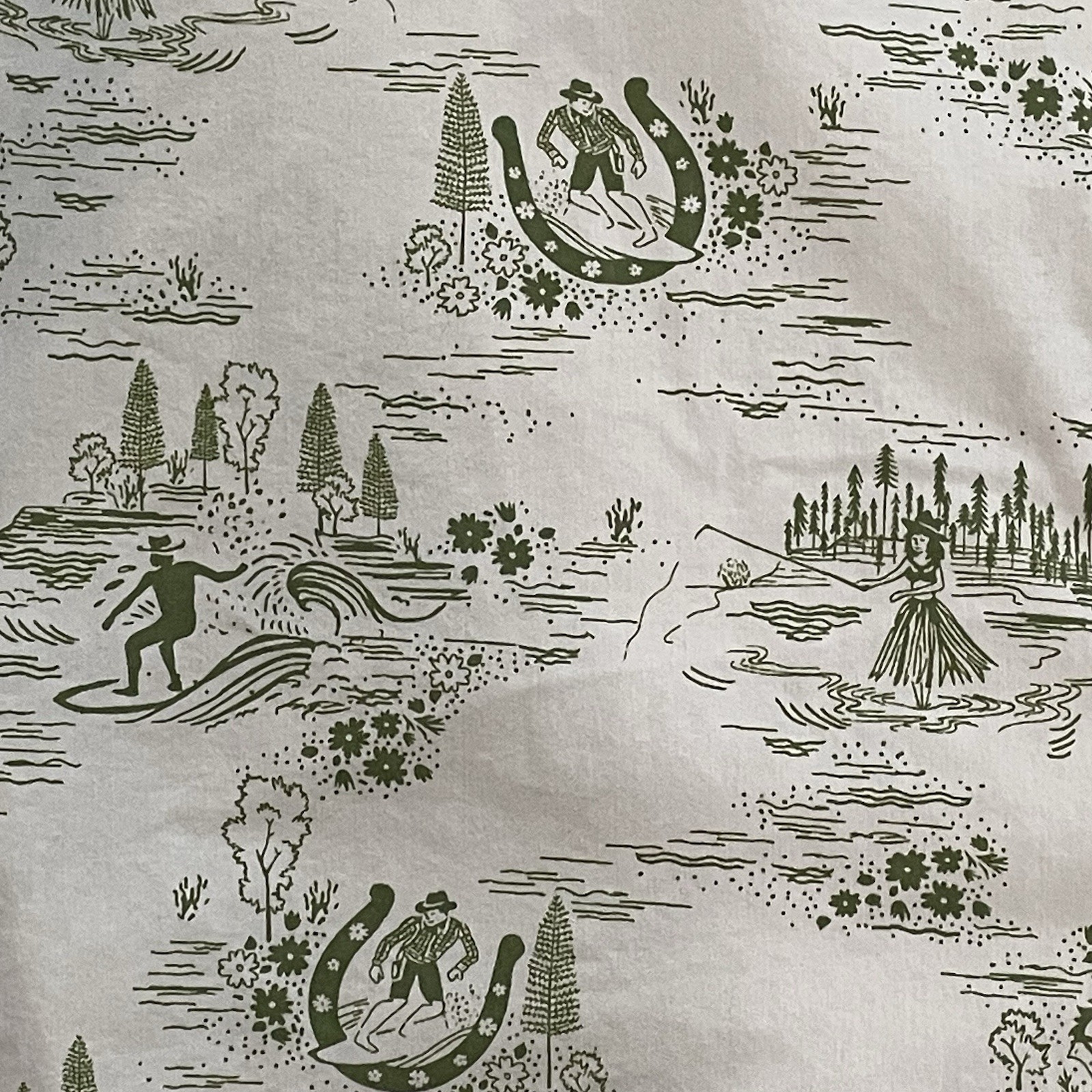 The western cowboy surfing and white-green color add a unique touch, making it ideal for casual or travel occasions during the summer or spring seasons. Machine washable for easy care, this shirt from the brand Stio is a must-have for any man's wardrobe.