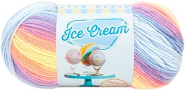 Lion Brand-Ice Cream Yarn. This soft, easy-care yarn works up to create delightful colorways that blend into unique and cheerful combinations. Use one ball to make a baby garment or two balls to make a blanket. This will be your next favorite yarn for baby shower gifts or your own baby project! Weight category: 2. Content: 100% acrylic. Putup: 3.5oz/100g, approximately 394yd/360m. Gauge: 24sx32r = 4in/10cm on size 5/3.75mm knitting needles. Suggested crochet hook size G-6/4mm. Dyelotted: we try but are not always able to match dyelots. Care: machine washable and dryable, dry cleanable with P solvents only, do not iron, do not bleach. Comes in a variety of colors (stripes and sprinkles). Each sold separately. Imported. 1 Pack 1 Skein