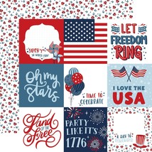 Stars And Stripes Forever Double Sided Cardstock 12 inch X12 inch 4X4 Journaling