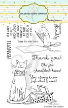 Give thanks and express your gratitude with their Thank You Kindly Clear Photopolymer Stamp Set featuring the illustrations of Anita Jeram for Colorado Craft Company. The set includes clear photopolymer stamps of a cat with an opened gift and a mouse with a pencil and a blank piece of paper. This 7.5 x 4.5 inch package includes the Thank You Kindly stamp set measuring 4 x 6 inches. It includes 9stamps, 2images and 7sentiments. The largest stamp is 3.75x3.25 inches and the smallest stamp is 1.12x0.62 inches. The stamps can be used with the coordinating Thank You Kindly die set sold separately AJ431 D . All of Colorado Craft Company's products are manufactured in the USA.