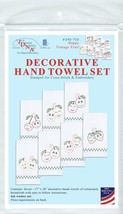 Create beautiful hand towels using this great kit. The stitching design has been stamped using ink that washes away with any liquid and the fabric is a cotton/poly blend broadcloth. This package contains seven 17x28 inch decorative hand towels, instructions for completion and care and a complete list of DMC floss requirements. Hoop, needle and floss all sold separately. Design: Happy Vintage Fruit. Made in USA.