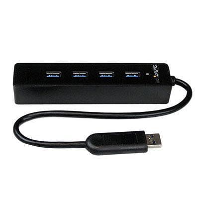 Add four external USB 3.0 ports to your notebook or Ultrabook with a slim portable hub. Compatible with Dell Latitude E5530 and Lenovo Carbon X1. Ideal for Ultrabook and MacBook users with limited USB 3.0 ports. Laptop accessory adding high speed USB 3.0 ports. Connect peripherals and external hard drives in the home or office. Built-in cable.