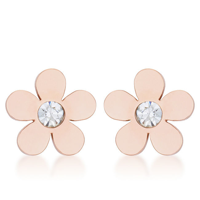 Daisy 0.3ct CZ Rose Gold Stainless Steel Flower Stud Earrings