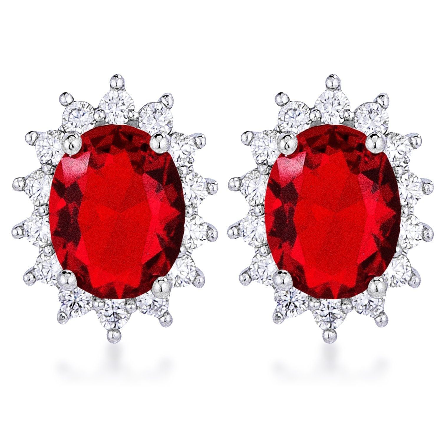 A Symphony of Red: Introducing Rhodium Plated Ruby Red Petite Oval Earrings