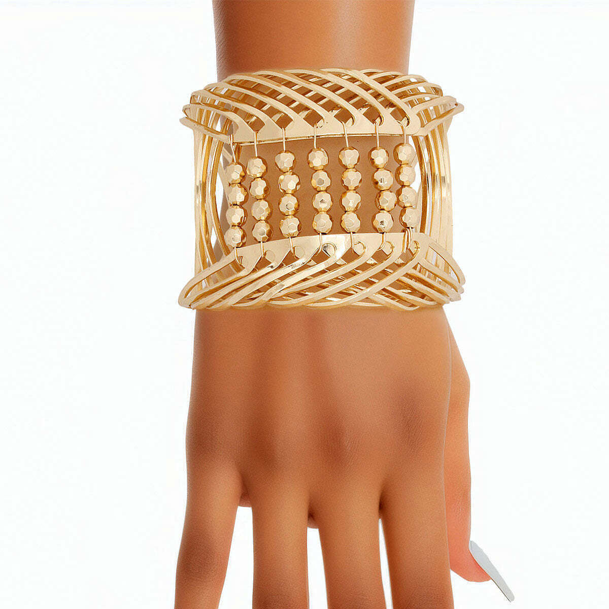 It all comes down to the quality. We've built this bracelet with meticulous craftsmanship. The sturdy gold metal gives it an enduring sheen, while the meticulously placed gold beads add a subtle, shimmering touch. You're not just buying a cuff; you're investing in a piece that embodies timeless elegance and durability.