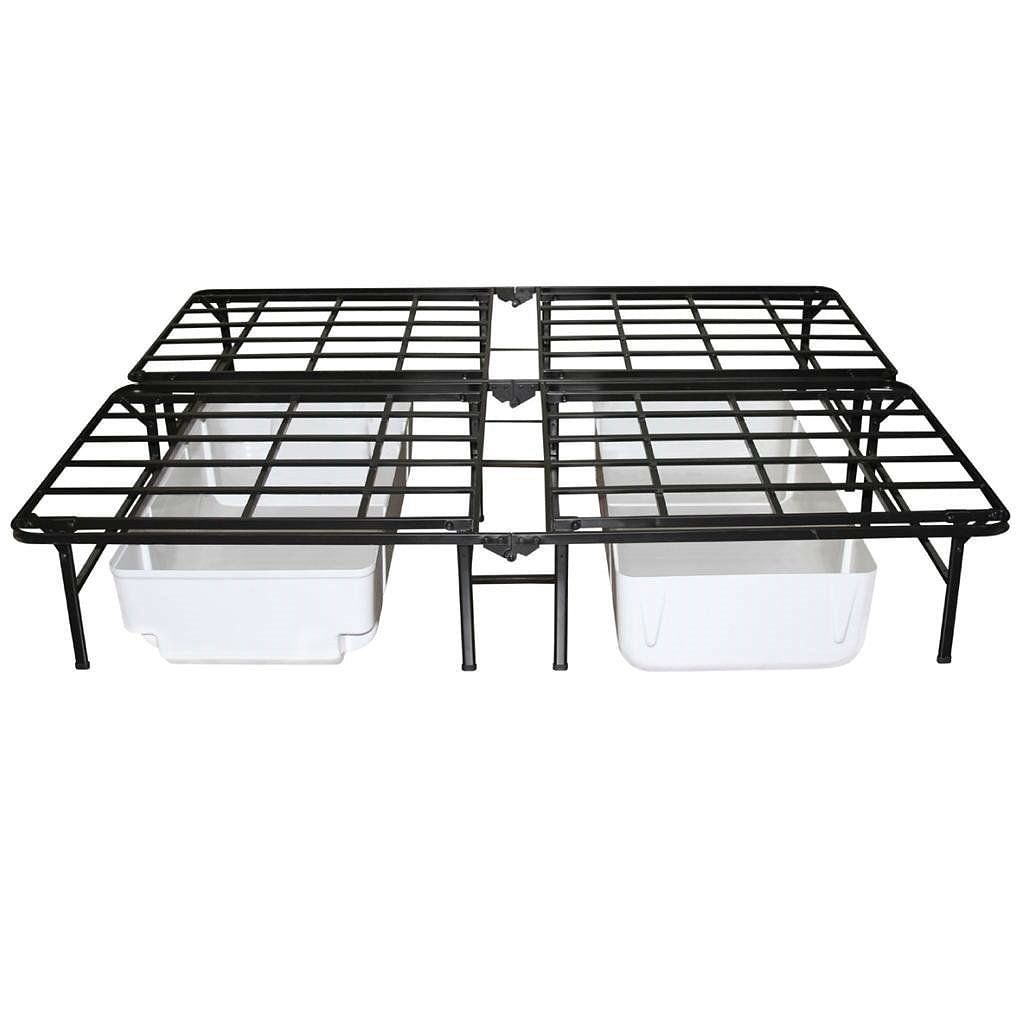 Queen size Heavy Duty Metal Platform Bed Frame - Supports up to 4,400 lbs Steel bed frame provides solid support for up to 4400 lbs. Frame stands 14 inches off the floor for increased storage space No tools are required, assembles in minutes Replaces bed frame and box spring 12.5 inches of clearance under the frame for valuable under bed storage space