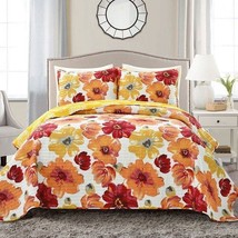 King size Orange Red Flowers Lightweight Polyester Microfiber Quilt Set