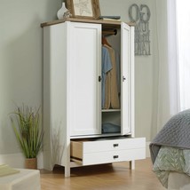 Farmhouse Bedroom Armoire Cabinet w/ Bottom Storage Drawer in White Wood Finish
