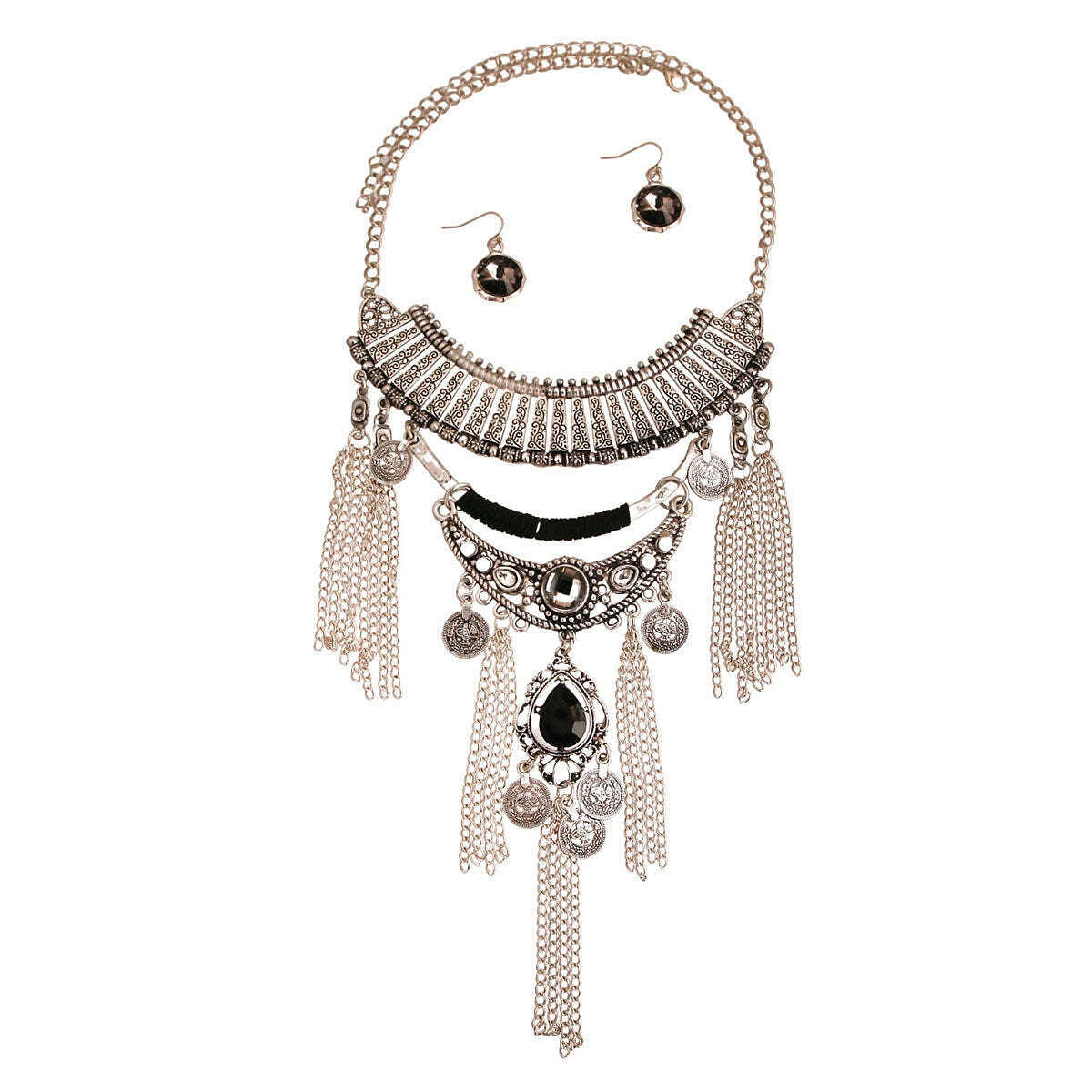 Unleash Your Inner Style: A Burnished Silver Black Necklace Set