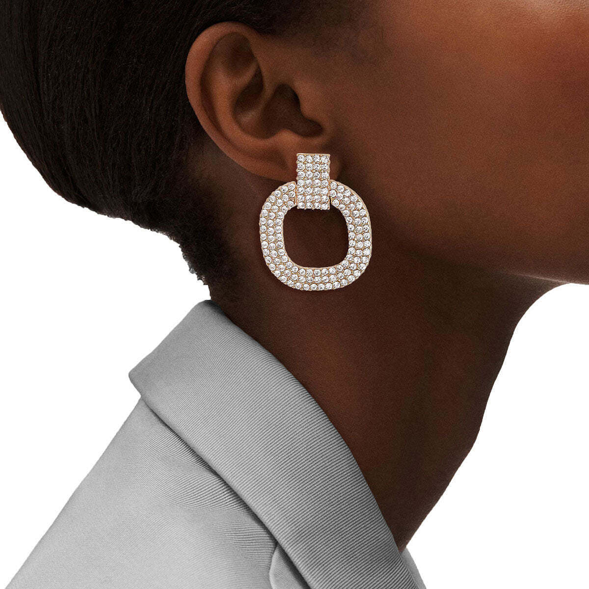 Let these gold pave rhinestone earrings be your statement piece-a testament to your personal style and confidence. They are the embodiment of timeless elegance and undeniable sophistication that will elevate any look.