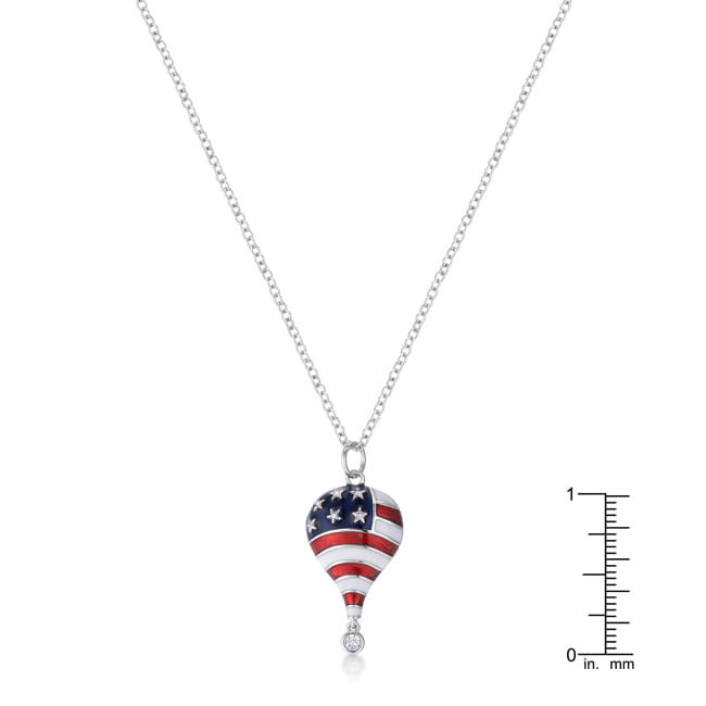 .1 Ct Patriotic Hot Air Balloon Rhodium Necklace with CZ
