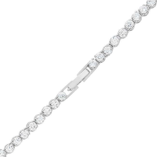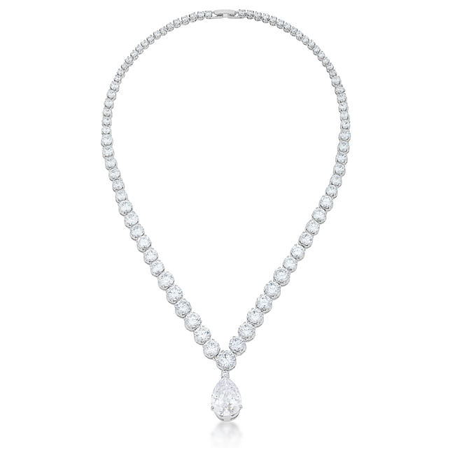 Adopt a piece of glamour with this elegant necklace. Set with glistening round and pear cut cubic zirconia this instant classic is a must-have for dressing up the most basic of wardrobes. Our genuine rhodium finish is achieved using an electroplating process that coats the item with heavy layers of rhodium a close cousin to platinum which gives our jewelry a platinum luster.