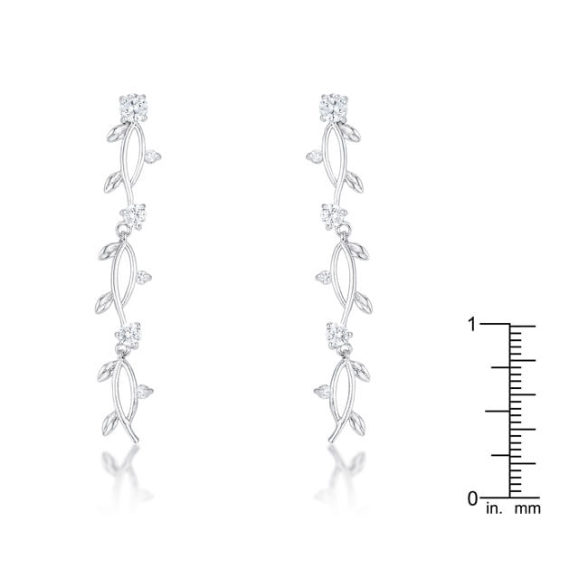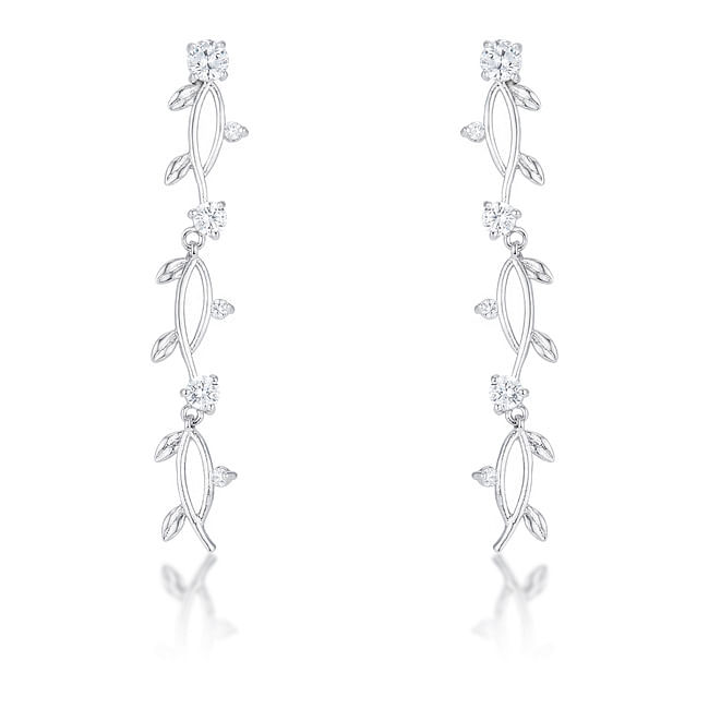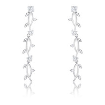 These elegant dangling vine earrings are the perfect complement to your favorite evening look. Plated with rhodium these dainty feminine earrings add sparkle with a natural timeless look.