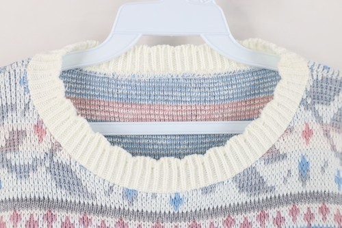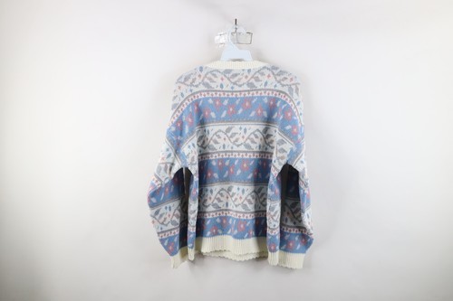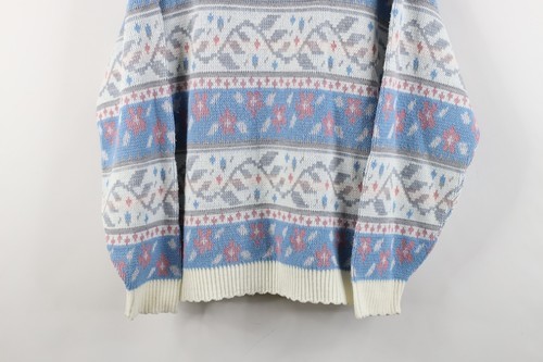 Vintage 90s Streetwear Womens Size Large Abstract Fair Isle Flower Knit Sweater