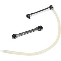 Contains 2 ratcheting wrenches 5/16"x3/8" and 8mmX10mm Ratchet allows for continuous loosening and tightening One way check valve in hose to prevent air when pumping brakes One person operation Made in USA