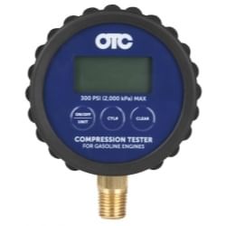 The OTC 5606-DGH digital compression gauge head can replace analog gauges to provide advanced features, including measure, record and playback of compression readings on up to 12 cylinders, for quicker testing and diagnosis. The gauge head can directly replace any 2-1/2" analog gauge with a 1/4" NPT male thread. Upgrades current compression gauge with exact, numeric measurements. The digital gauge is easy to read and can display pressures in PSI, kPA, bar and kg/c. A convenient push-button side release valve relieves pressure for repeat testing. Upgrade your 5605 or 5606 compression tester with a digital gauge for easier, faster compression readings. Also fits other compression testers with 14mm thread.