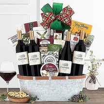 Cliffside Vineyards cabernet, merlot, pinot noir and zinfandel are brought together with some of our most requested gourmet fare. Lindt milk chocolate truffles, crackers, garlic herb cheese wedges, sesame cranberry cookies, bacon habanero snacks, vanilla fudge with sea salt, dark chocolate truffles, Lily O'Brien's sticky toffee, taralli Italian pretzels, Belgian milk chocolate seahorse truffles and more make this wine basket perfect for all your celebrations and parties.