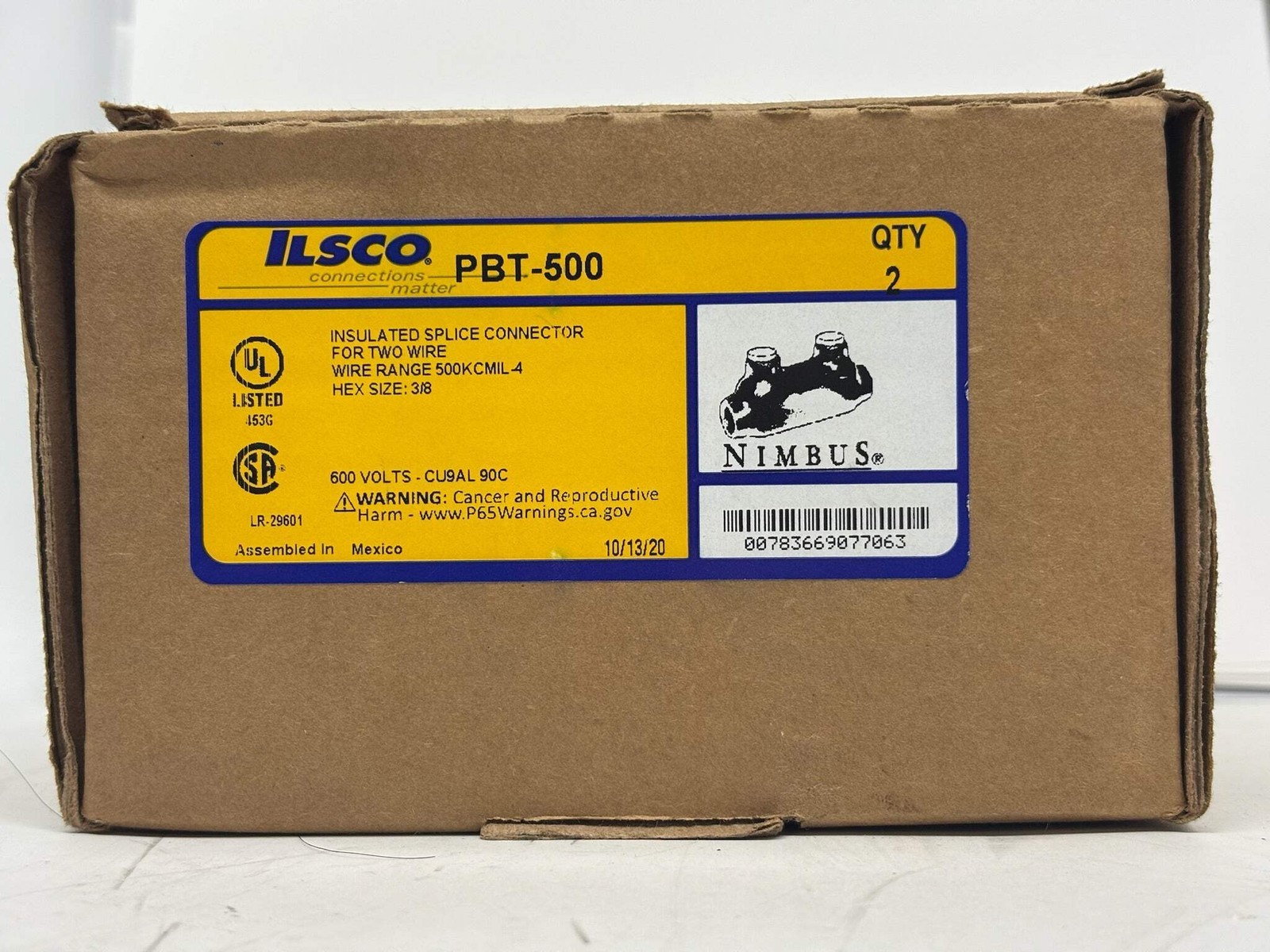 2 PK Ilsco PBT-500 Dual-Rated Insulated In-Line Splicer/Reducer, 4 AWG?500 kcmil
