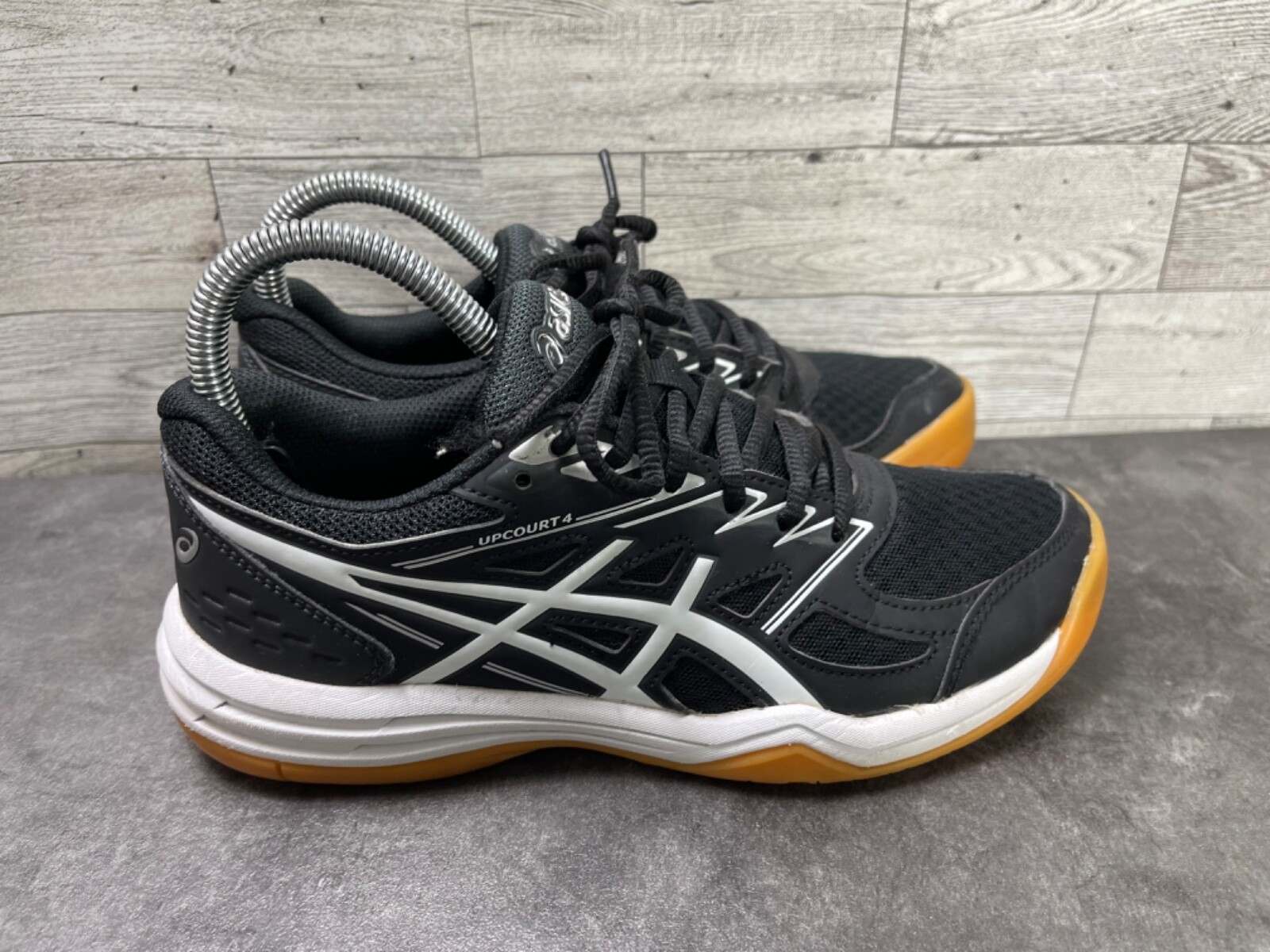 Asics Sneakers Women 6M UpCourt 4 Running Shoes Black White Pickleball Tennis