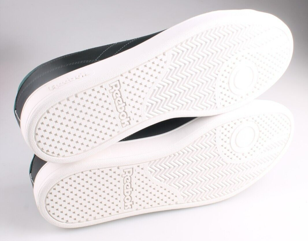 Las zapatillas de tenis CLN de Reebok Court en el anochecer de medianoche con acentos verdes del bosque oscuro son una zapatilla elegante y elegante diseñada para hombres de tamaño 13.