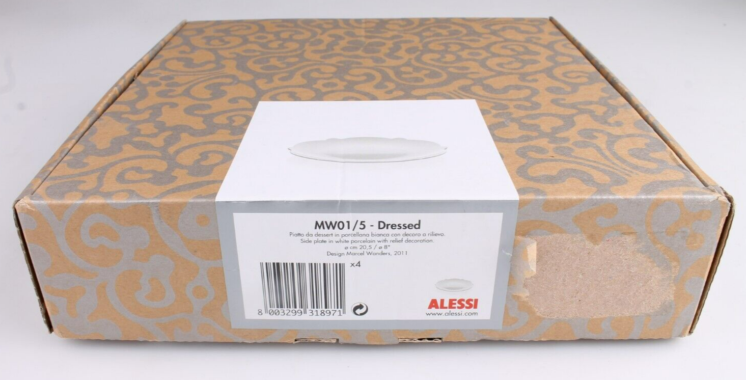 Alessi Dressed Piattino Set Di 4 Porcellana Con Relief Decorazione Nuovo IN Box