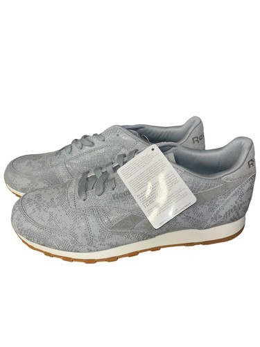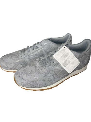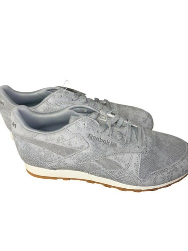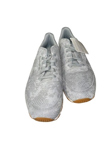 Reebok Women's CL LTHR Clean Exotic Print Track Shoe Grey/Chalk/Gum Size 10.5