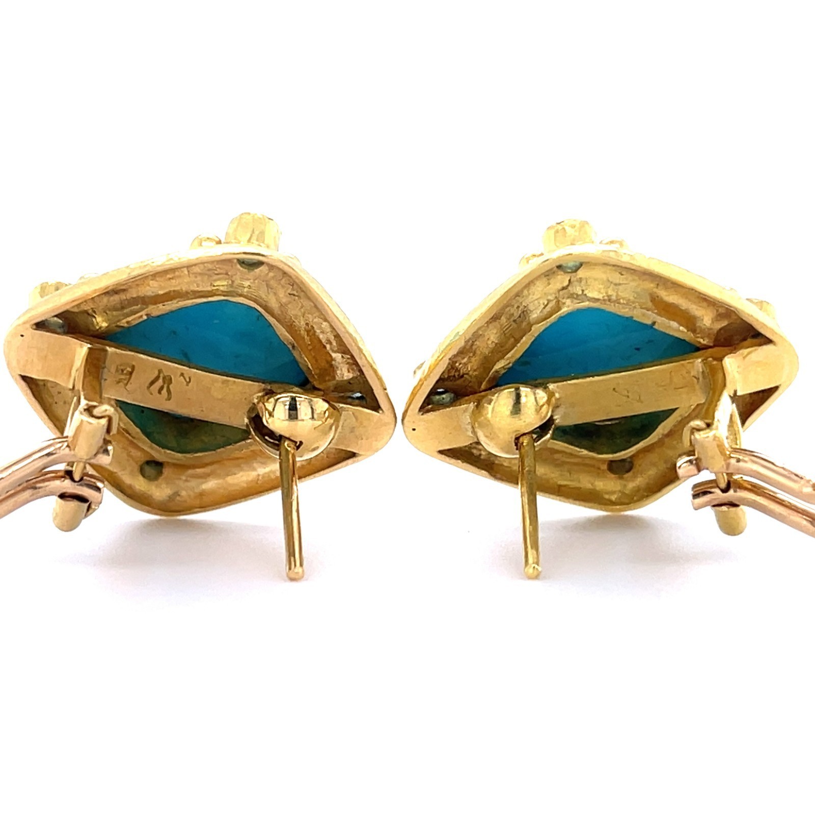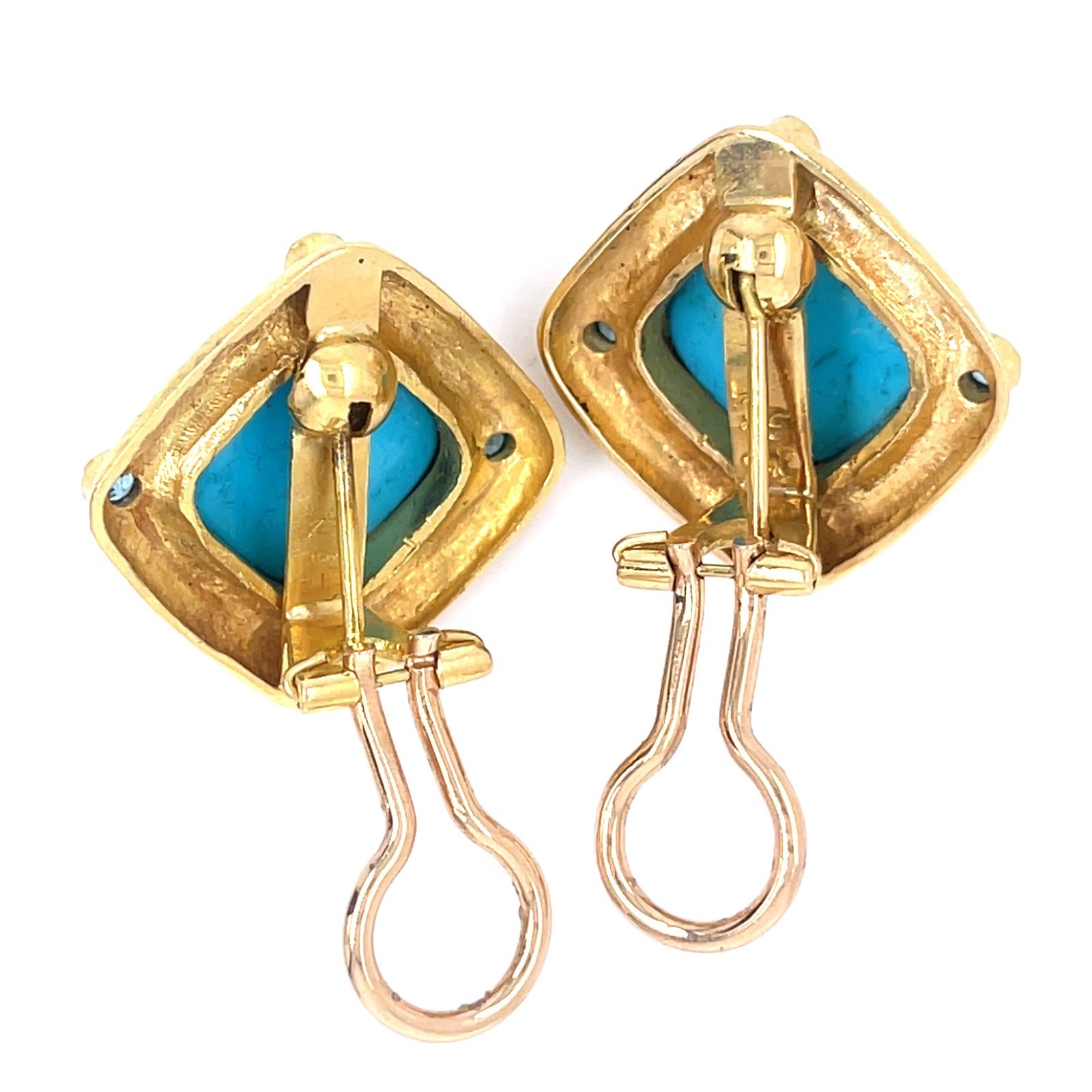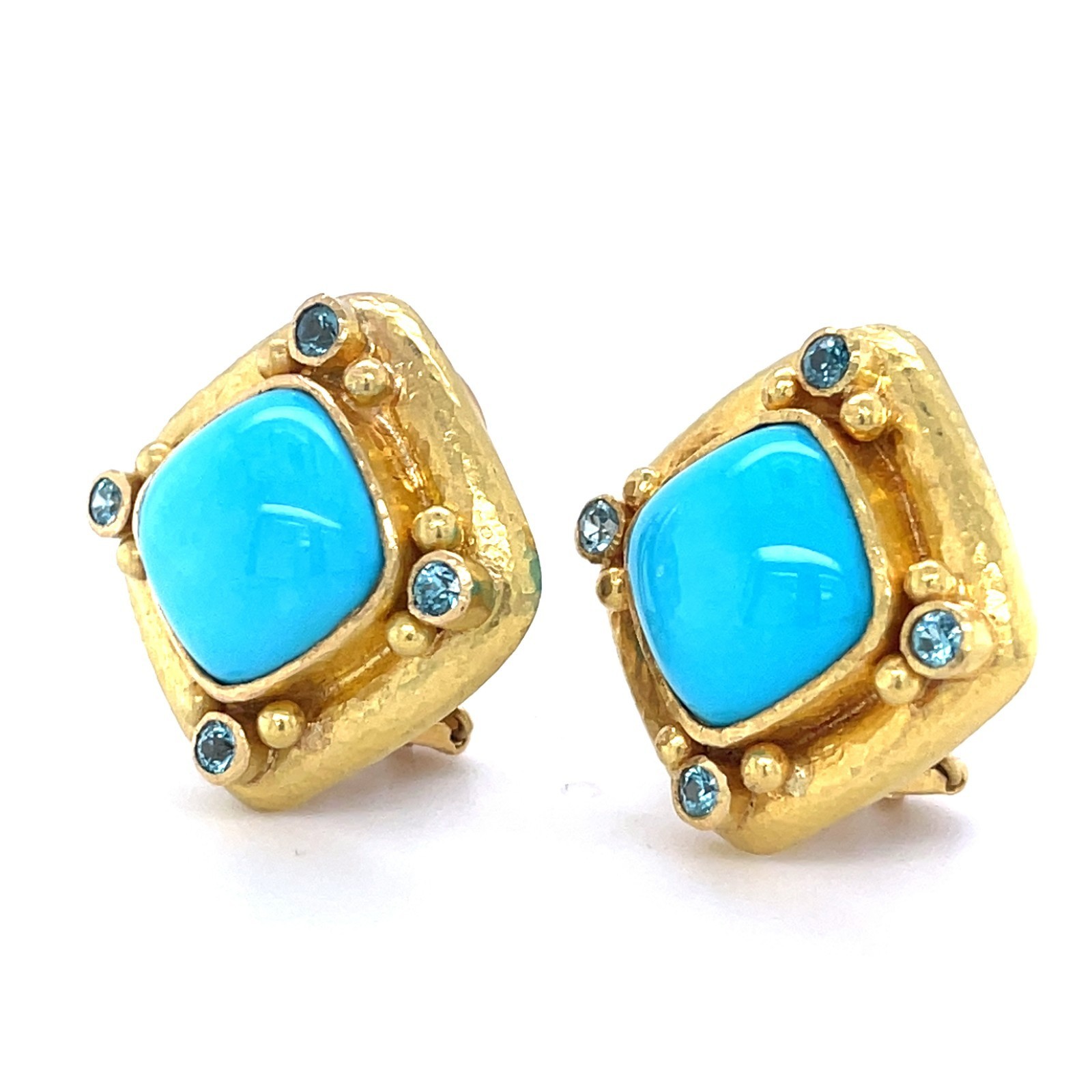 Elizabeth Locke 19k Yellow Gold Turquoise and Topaz Ear Clips Retractable Posts