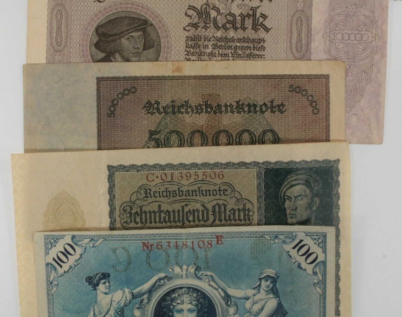 1908-1923 Germany 4-Note Currency Set // (1) German Empire (3) Weimar Republic