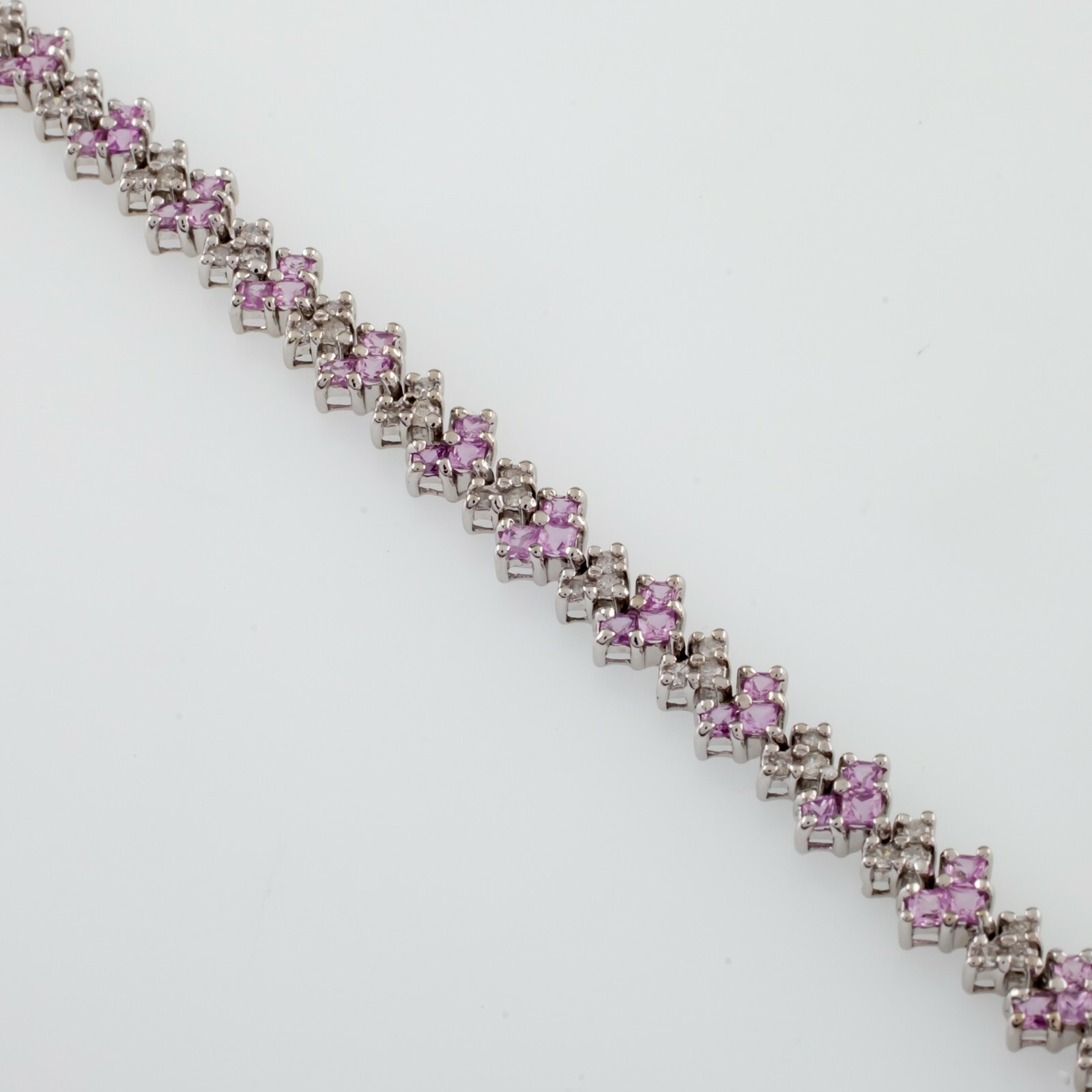 10k Weißgold Diamant und Rosa Amethyst Tennis Armband Tdw = 8.28 Karat