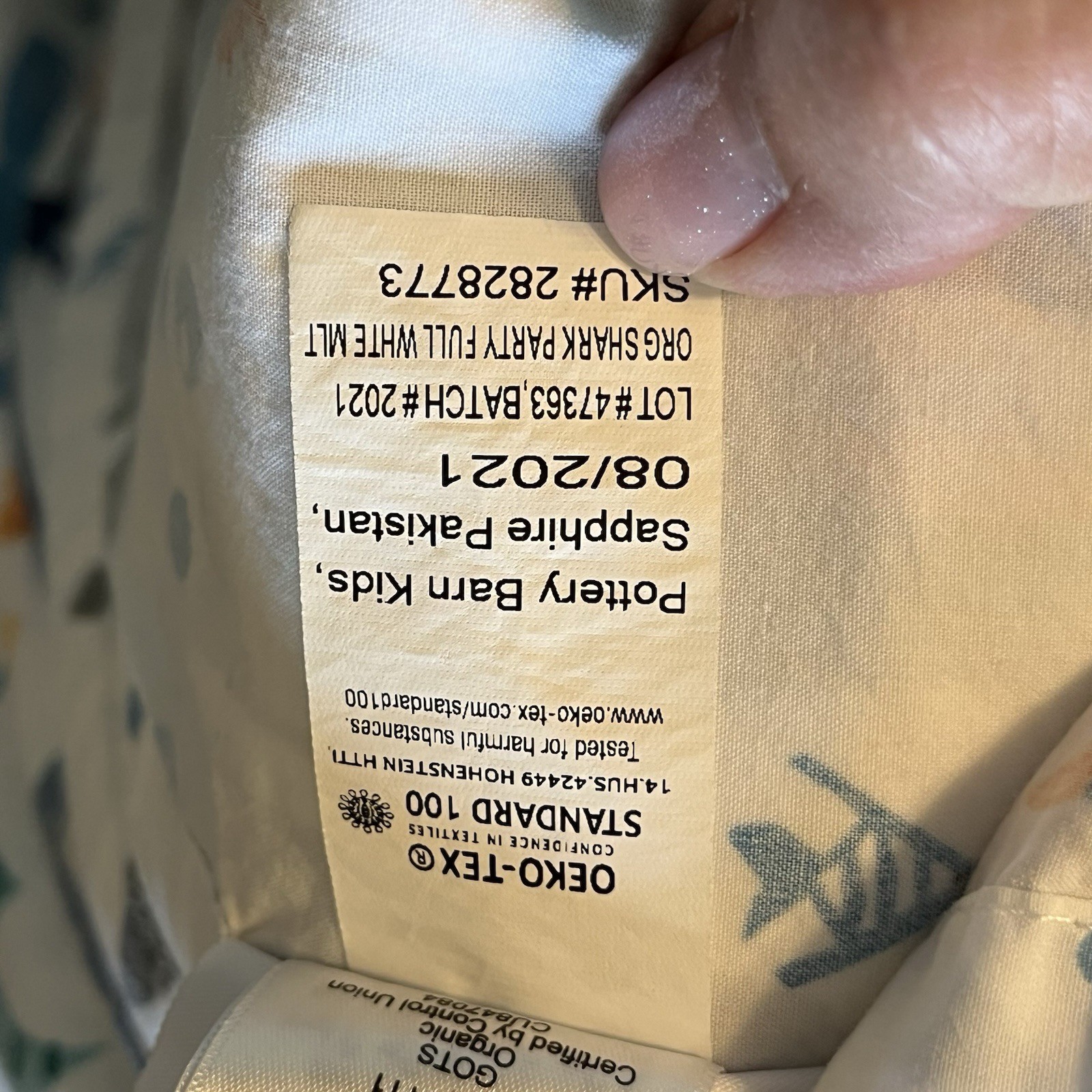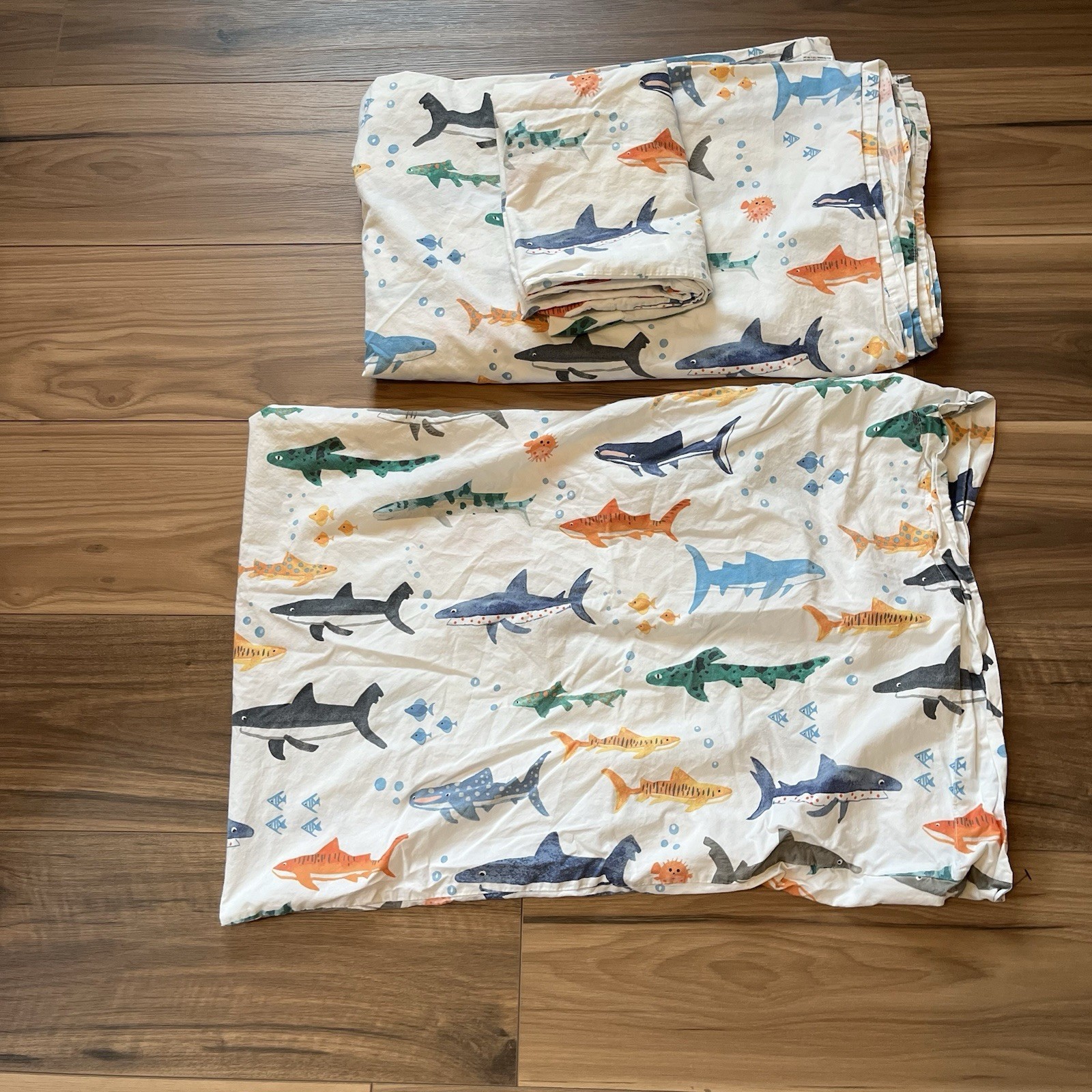 Pottery Barn Kids Sharks Full Flat Sheet 2 Standard Pillowcases Organic Cotton