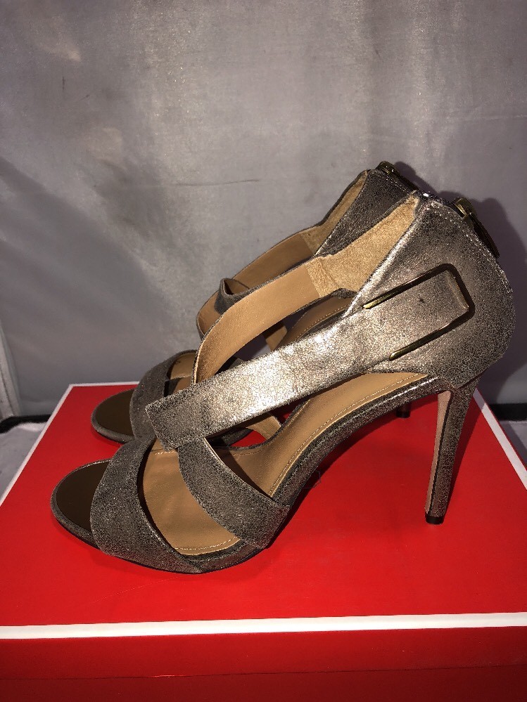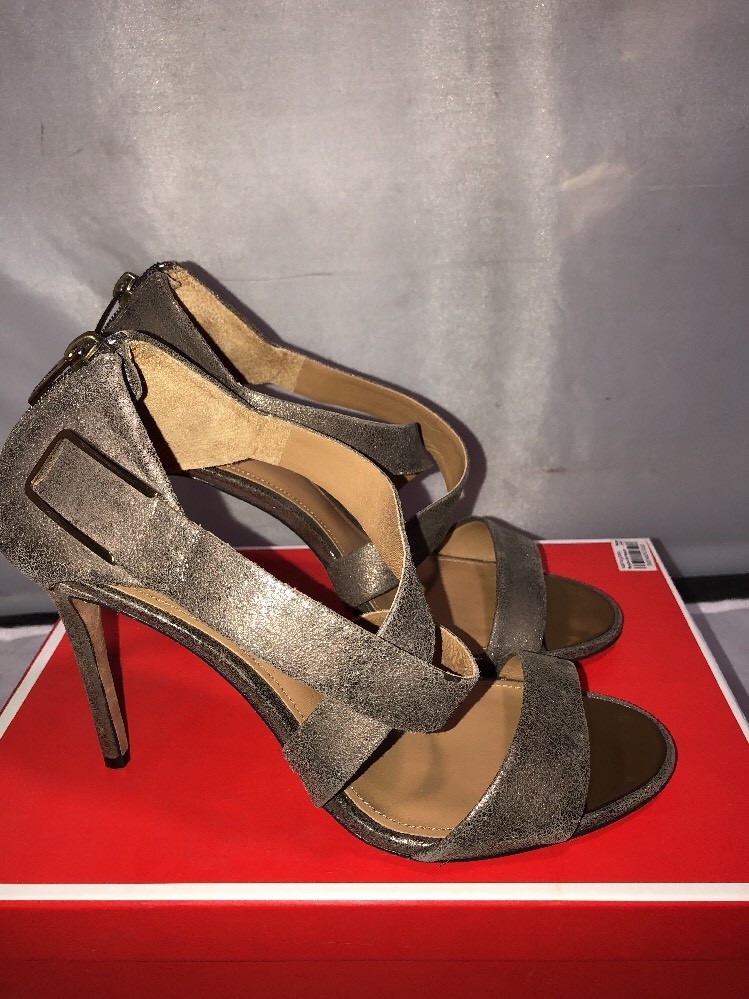 Coach Halsey Heel Sandals Strappy Open Toe Mat Tonal Pewter Silver 9.5