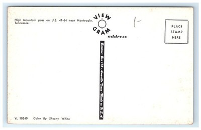 Printed by View-Gram, with a printed address section and postage box, this postcard is an original piece from mid-20th century America, reflecting the era's popular travel and roadside postcard style. The back includes the reference number YL 10240 and notes its manufacturing in Amarillo, Texas, U.S.A. This collectible postcard is ideal for enthusiasts of vintage Americana, historic highways, and Tennessee landmarks, offering a glimpse into the mid-century travel experience through the scenic Southern Appalachian Mountains.