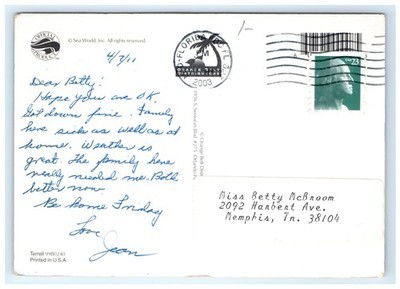 Postmarked in 2003, this postcard also bears a 23-cent USA postage stamp and a personal handwritten message, adding a nostalgic touch. The SeaWorld lighthouse and sea lions symbolize the park's marine life focus and have been beloved attractions for decades. Its continental (6 x 4 inch) size and high-quality lithographic print further enhance its appeal as a display piece or addition to a vintage postcard collection.