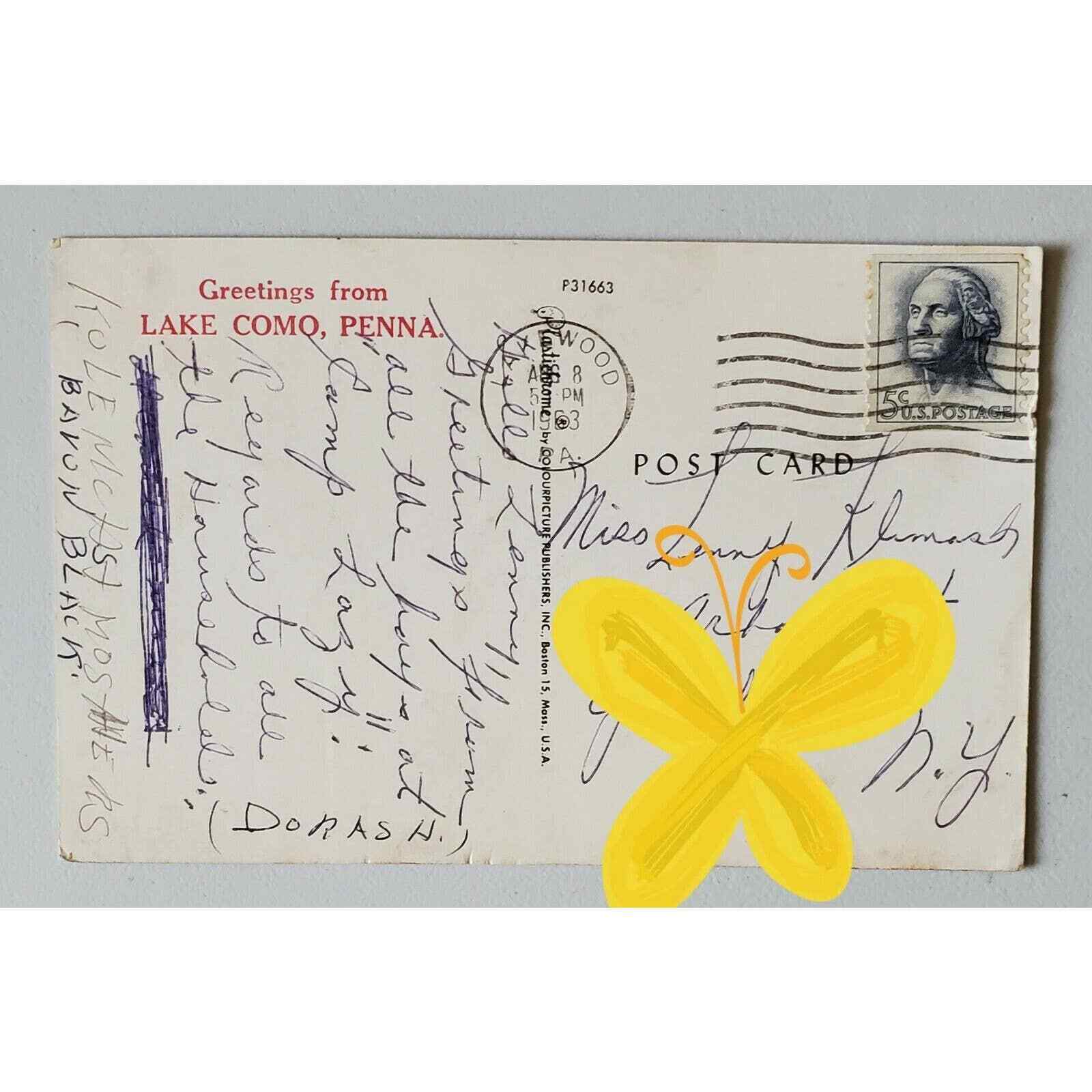 Vintage Divided Back Chrome Funny Humorous Postcard Featuring a Funny with Two Roosters Who "Scratched Up A Little Dirt!" with Greetings from Lake Como Pennsylvania. Postcard posted.