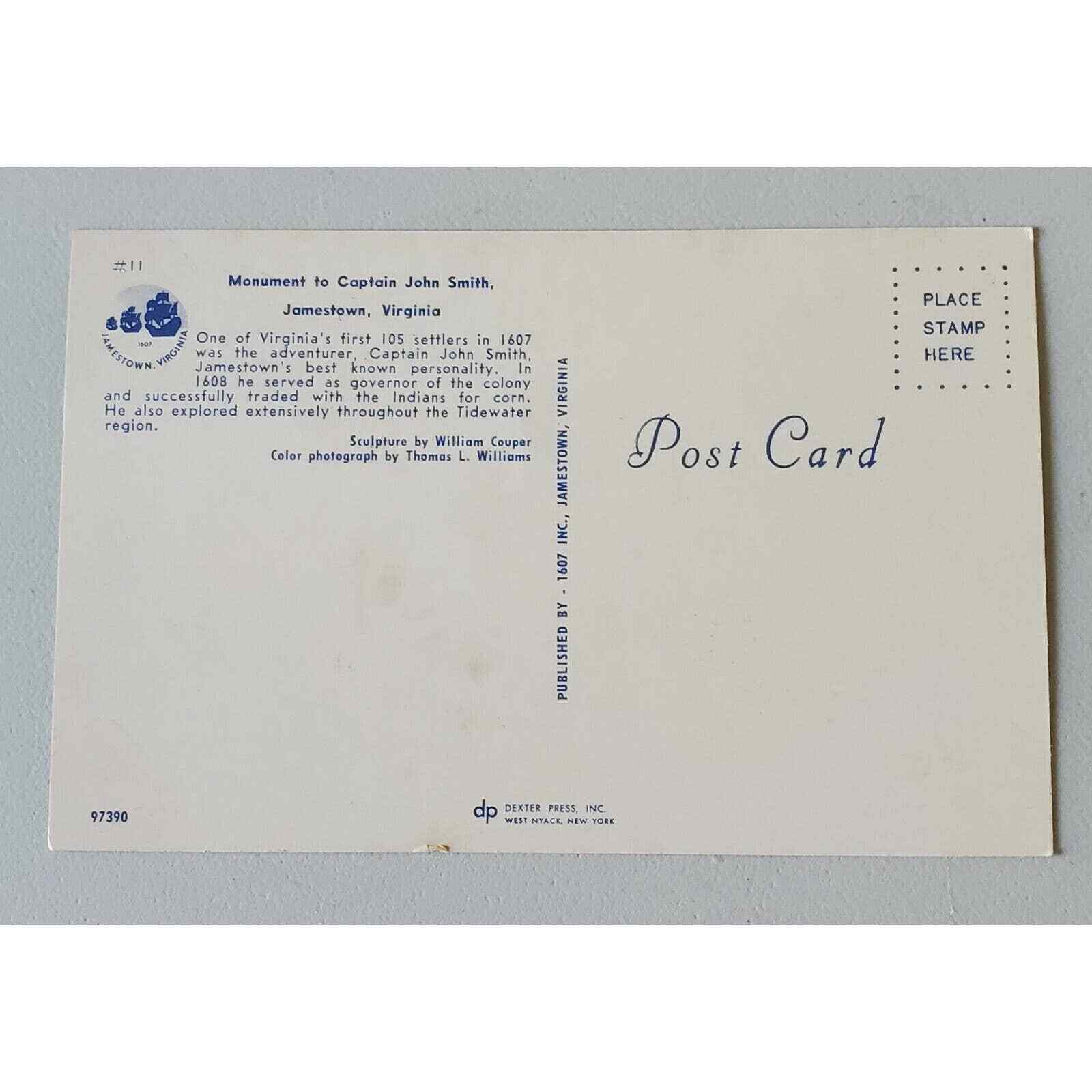 Vintage Divided Back Chrome Postcard Featuring a Monument to Captain John Smith A First Settler in Jamestown Virginia.