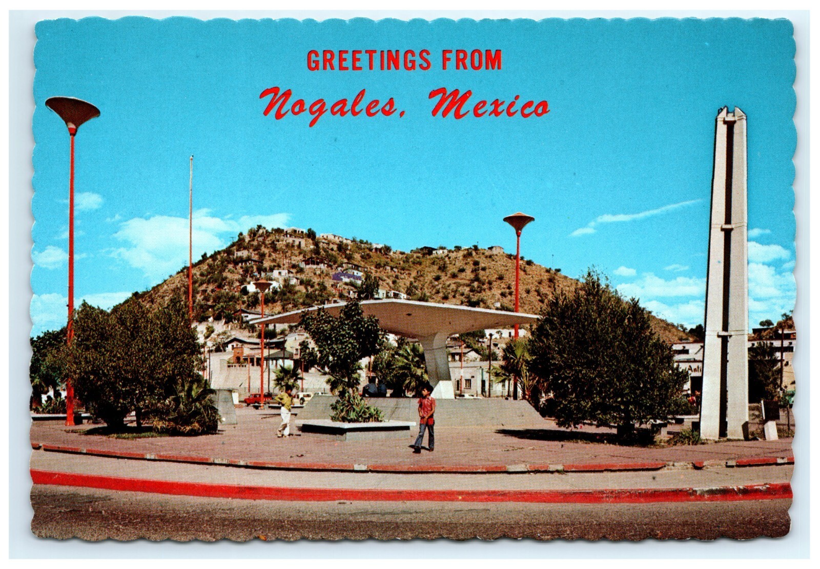Vintage Divided Back Postcard Depicting the Downtown City Park and Plaza Located in Nogales Sonora Mexico.