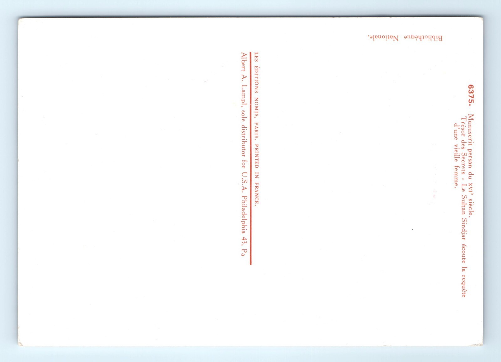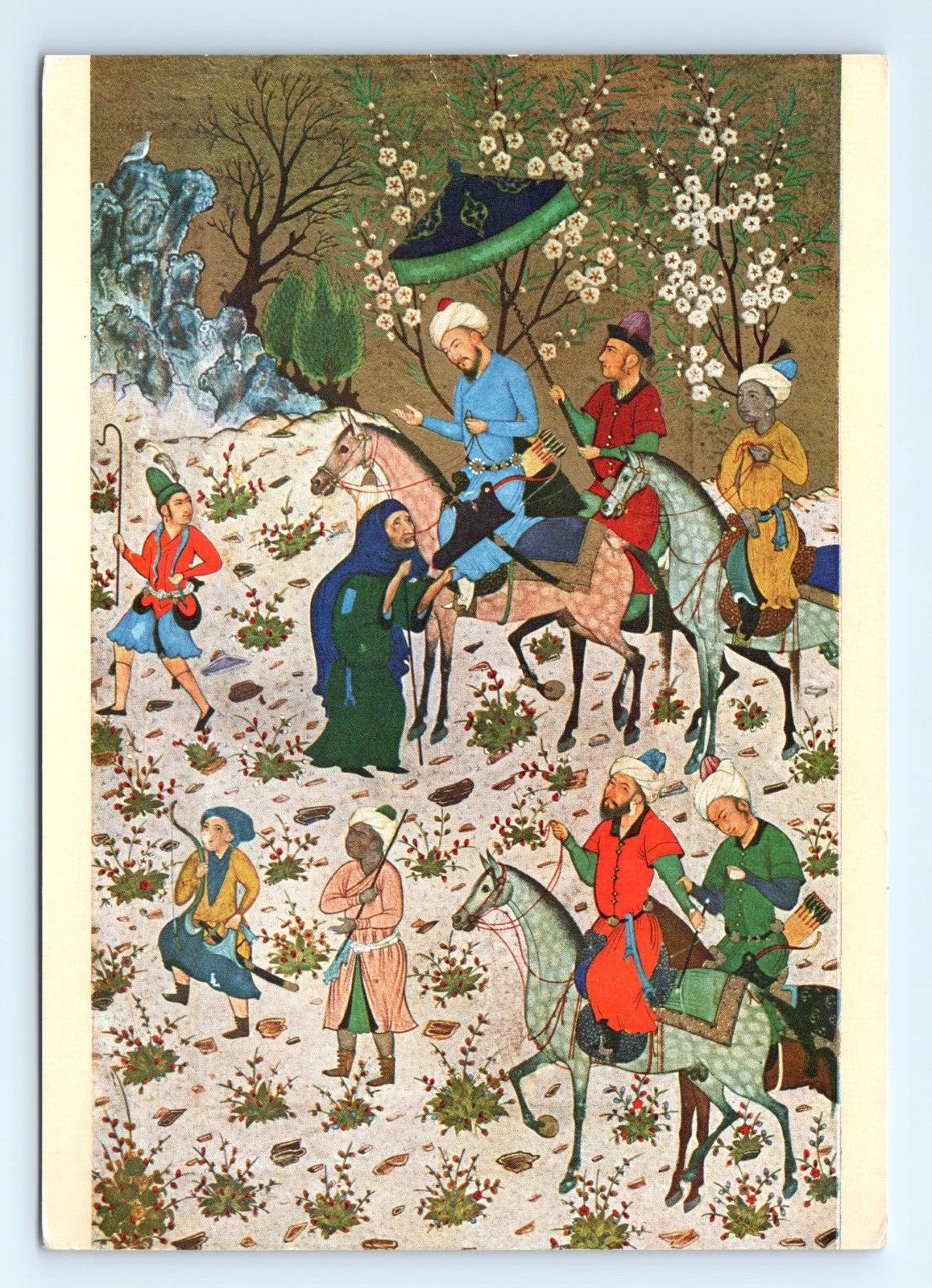 Vintage Divided Back Postcard Depicting a Maintain from a Persian Manuscript "Sultan Sinjar Listens to the Request of an Old Woman".