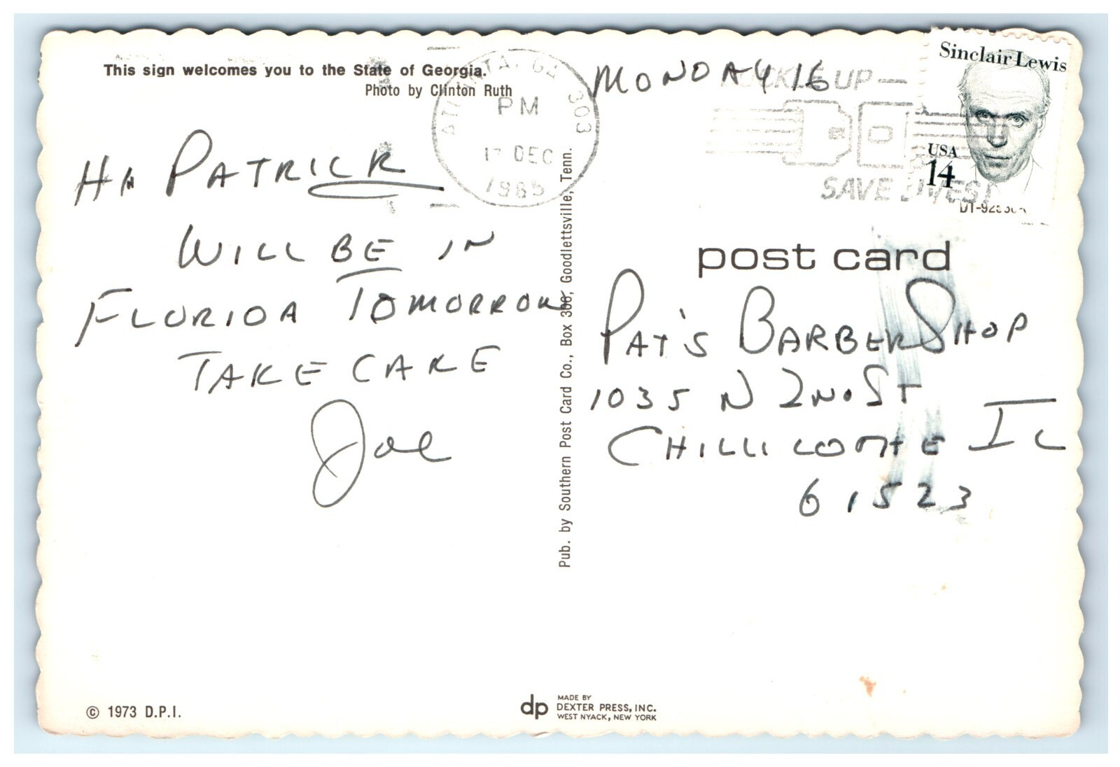 Georgia State Welcome Sign Postcard Posted and 44 similar items