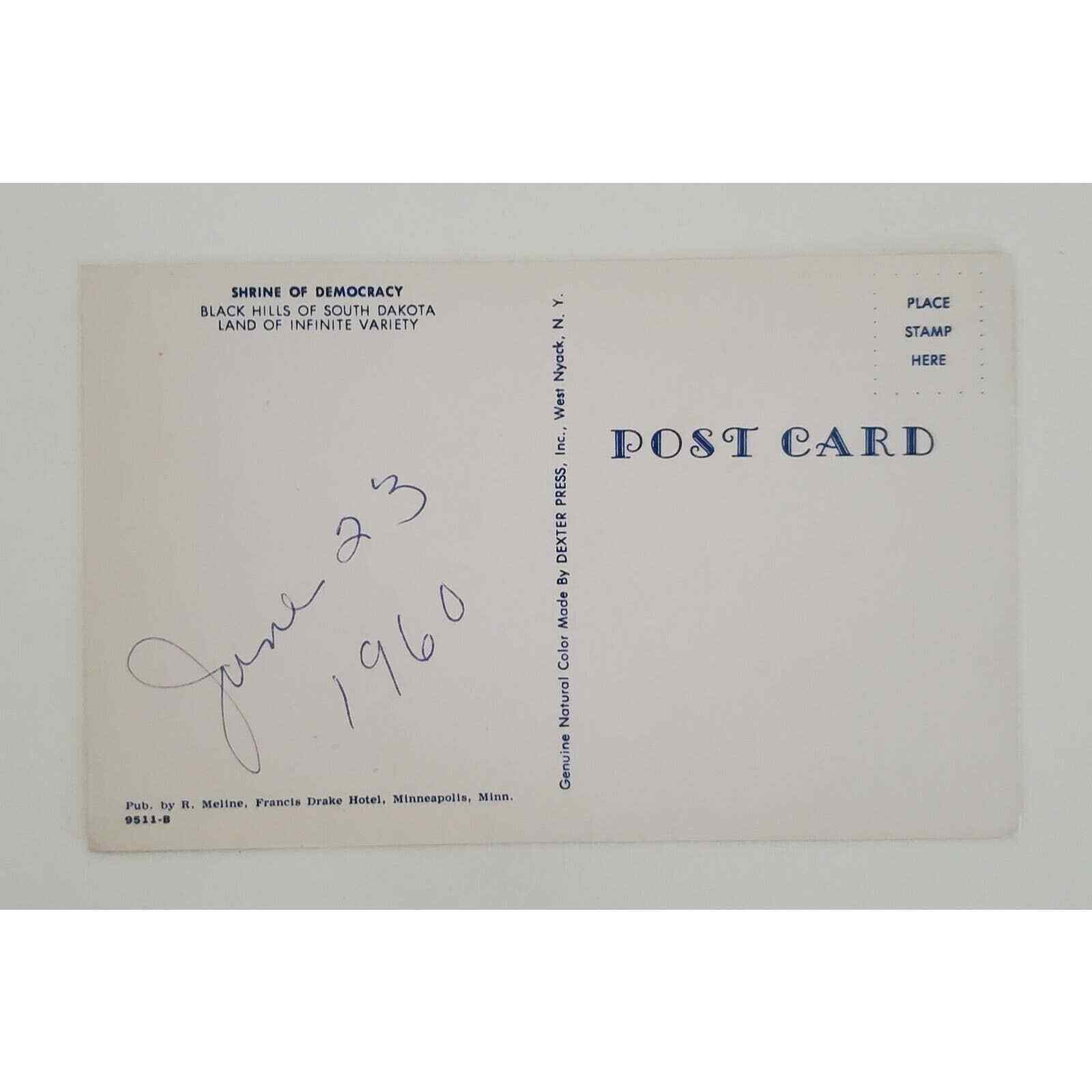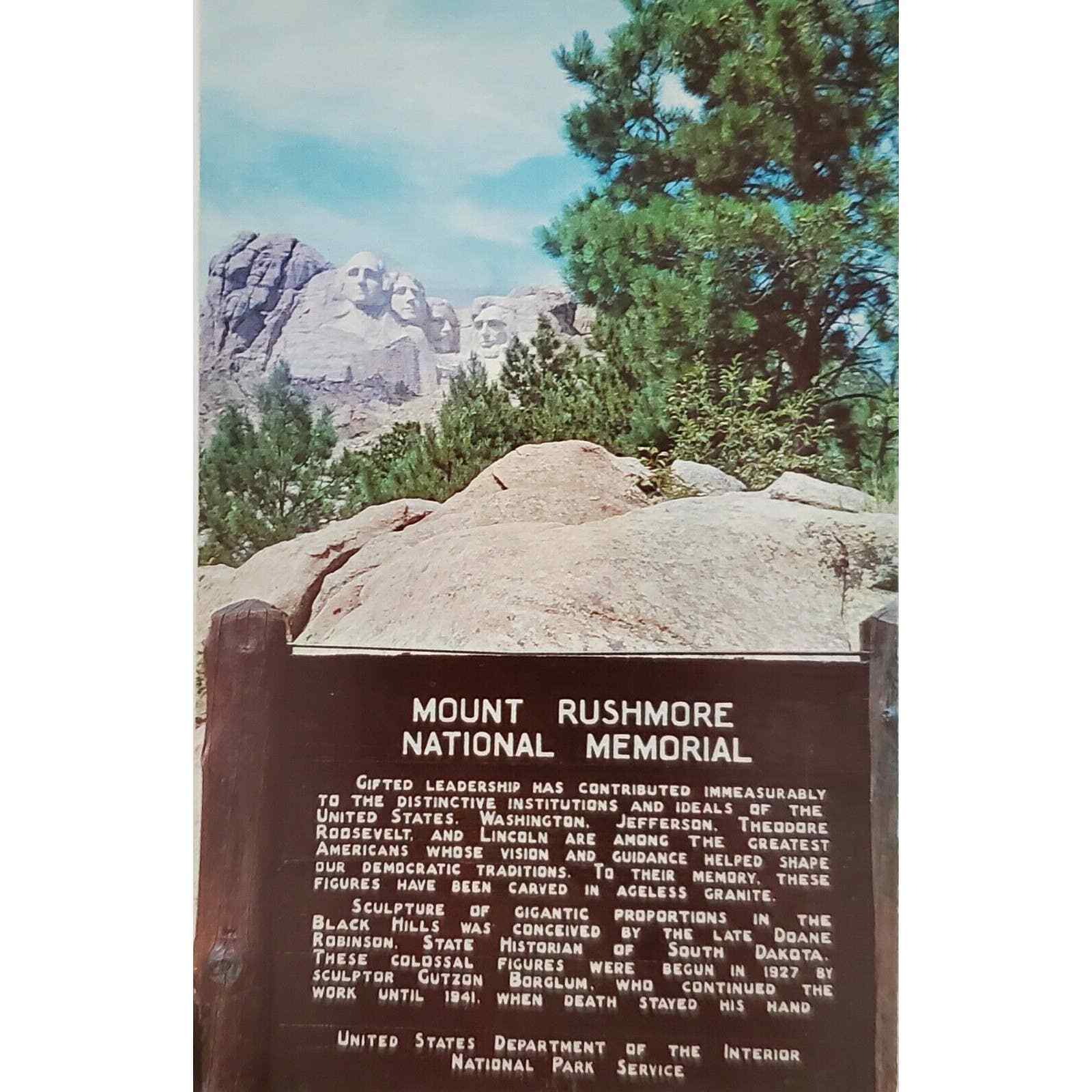 Vintage Postcard Featuring Mount Rushmore the Shrine of Democracy Located in the Black Hills of South Dakota.