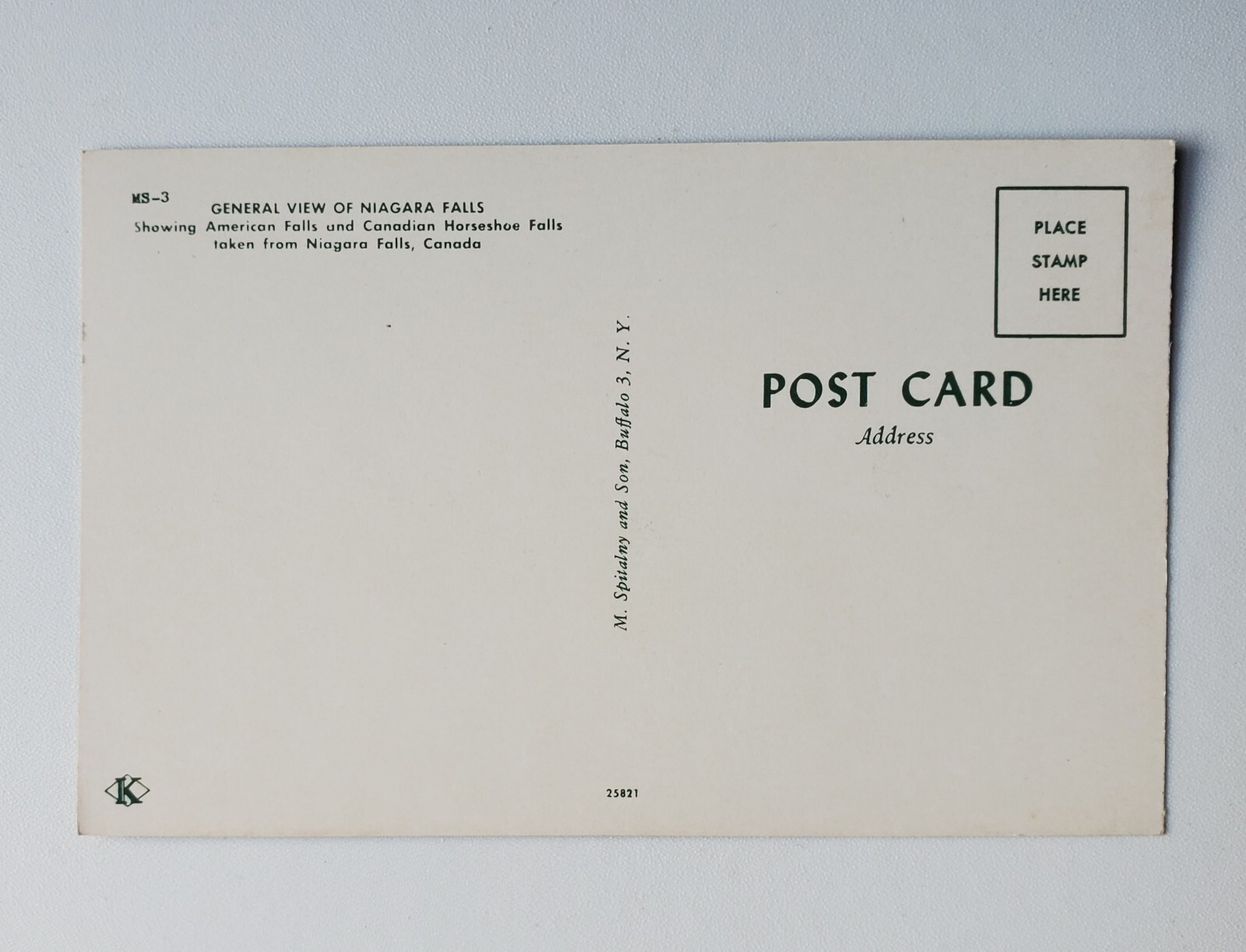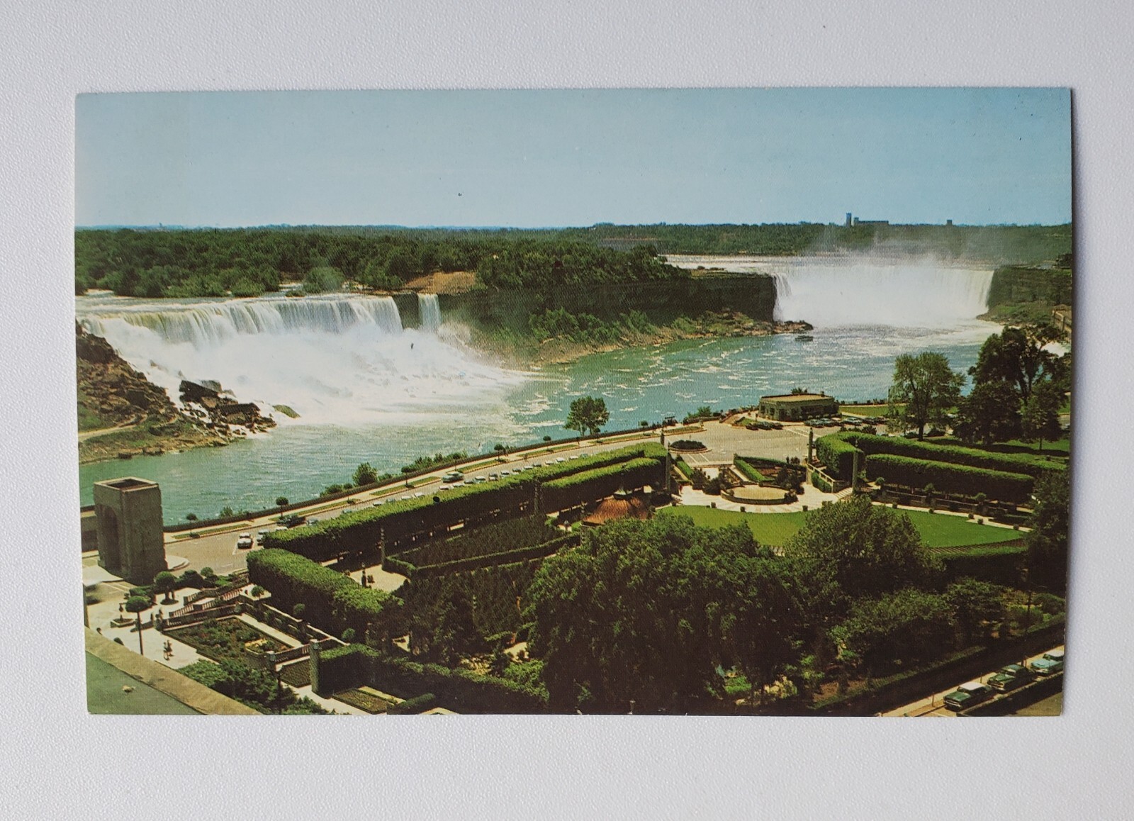 Vintage Divided Back Chrome Postcard Featuring Niagara Falls Including the American Falls and the Canadian Horseshoe Falls Taken from Niagara Falls Canada Located in Buffalo New York.